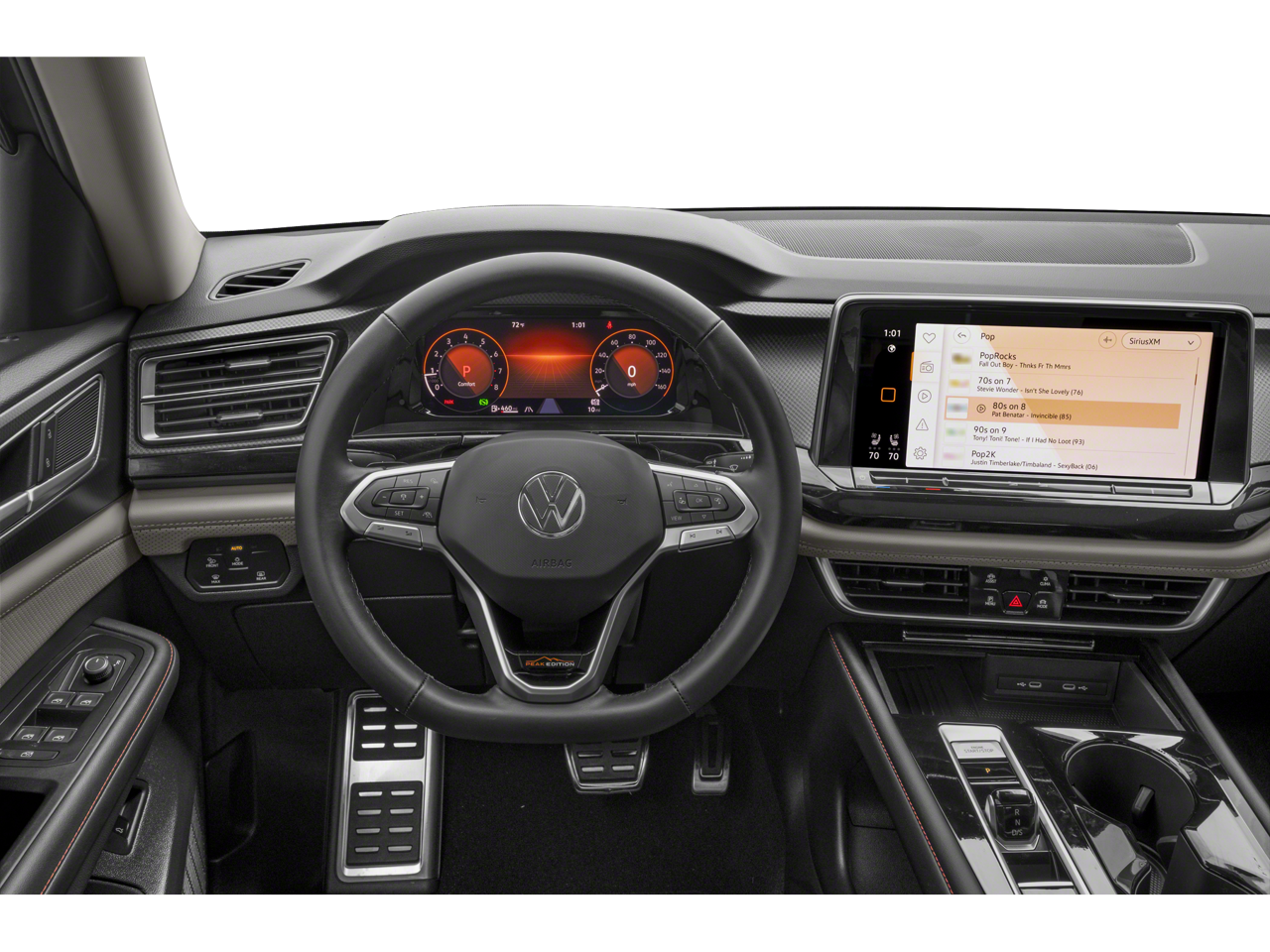 - MIB3 Composition Media -inc: 12" touchscreen multi-function center display, AM/FM/HD radio and WMA/MP3/FLAC player w/USB-C input, voice control, SiriusXM w/360L (w/3-month free trial subscription; 360L services require acceptance of SiriusXM terms), 6-speaker sound system, Bluetooth® connectivity (for compatible devices), capability for in-vehicle 4G LTE enabled Wi-Fi (cellular data plan required; includes limited trial), capability for connected vehicle services (capabilities for services vary; requires enrollment or subscription), App-Connect smartphone integration (w/Apple CarPlay, Android Auto and MirrorLink) via USB, wireless App-Connect smartphone integration (for compatible devices) w/multi-phone pairing capability and Qi wireless inductive charger up to 15W (for compatible mobile phones and accessories) in front row All connected vehicle services subject to terms and limitations. Some services, which include emergency assistance services, require a paid subscription. See dealer or vw.com/connected for details.