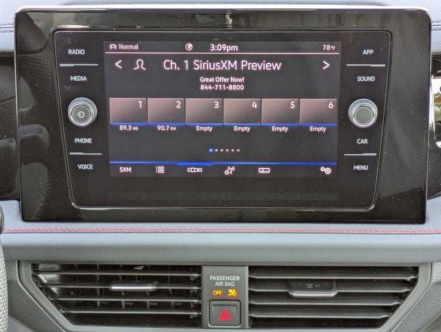 - Radio: MIB3 Composition Media w/Touchscreen -inc: 8" touchscreen multi-function center display, AM/FM/HD Radio and WMA/MP3/FLAC player w/USB-C, voice control, Bluetooth® connectivity for compatible devices, SiriusXM w/360L (w/3-month free trial subscription; 360L services require acceptance of SiriusXM terms), capability for in-vehicle 4G LTE enabled wi-fi (cellular data plan required; includes limited trial), capability for connected vehicle services (capabilities for certain services vary; requires enrollment or subscription), wireless App-Connect smartphone integration (for compatible devices) w/multi-phone pairing capability, 45W fast charging (for compatible mobile phones and accessories) via USB and Qi wireless inductive charger (for compatible mobile phones & accessories), VW Premium Sound System w/Subwoofer All connected vehicle services are subject to terms & limitations. Some services require a paid subscription. See dealer or vw.com/connected for important details.