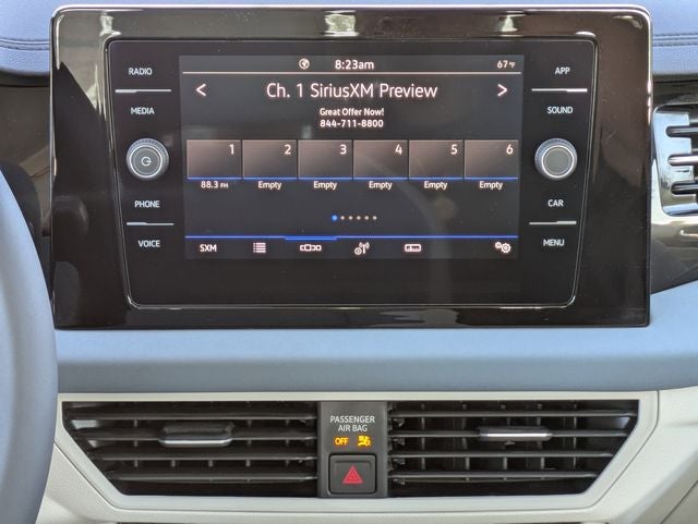 - Radio: MIB3 Composition Media w/8" Touchscreen -inc: AM/FM/HD Radio and WMA/MP3/FLAC player w/USB-C, voice control, 6-speaker sound system, Bluetooth® connectivity (for compatible devices), SiriusXM w/360L (w/3-month trial subscription; 360L services require acceptance of Car-Net terms), capability for in-vehicle 4G LTE enabled Wi-Fi (cellular data plan required; includes limited trial), capability for connected vehicle services (capabilities for certain services vary; requires enrollment or subscription), App-Connect smartphone integration (w/Apple CarPlay, Android Auto and MirrorLink) via USB, wireless App-Connect smartphone integration (for compatible devices) w/multi-phone pairing capability, USB-C enhanced charging, up to 45W (for compatible devices) and Qi wireless inductive charger (for compatible mobile phones and accessories) All connected vehicle services are subject to terms and limitations. Some services require a paid subscription. See dealer or vw.com/connected for important details.