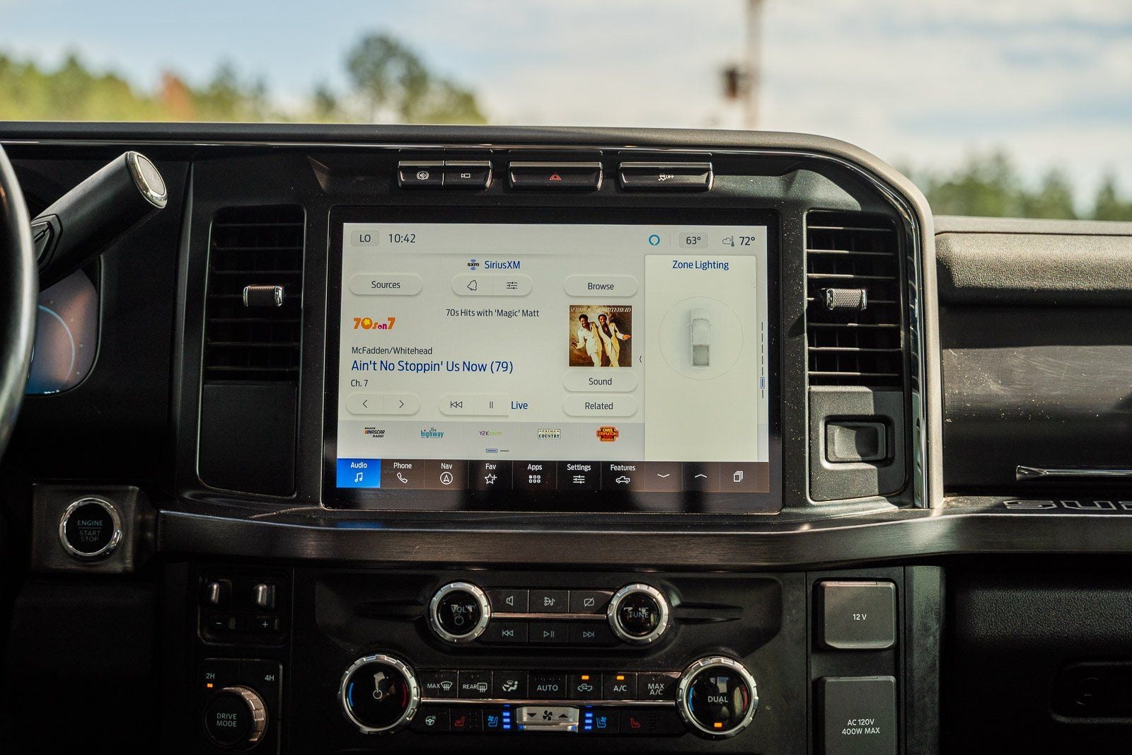 - SYNC 4 w/Enhanced Voice Recognition -inc: 12" LCD capacitive touchscreen w/swipe capability, information on demand panel, wireless phone connection, cloud connected, AppLink w/app catalog, 911 Assist, Apple CarPlay and Android Auto compatibility, digital owner's manual, conversational voice command recognition and connected built-in navigation w/complimentary 3-year trial for eligible vehicles that begins on the new vehicle warranty start date, Customers must unlock the navigation service trial by activating the eligible vehicle w/a FordPass member account, If not subscribed by the end of the complimentary period, the connected navigation service will terminate, and the system will revert to embedded offline navigation, Navigation services require SYNC4 and Ford Pass Connect (optional on select vehicles), complimentary connect service and the FordPass app (see FordPass terms for details), Connected service and features depend on compatible AT&T network availability, Evolving technology/cellular networks/vehicle capability may limit functionality and prevent operation of connected features, FordPass app, compatible w/select smartphone platforms, is available via a download, Message and data rates may apply