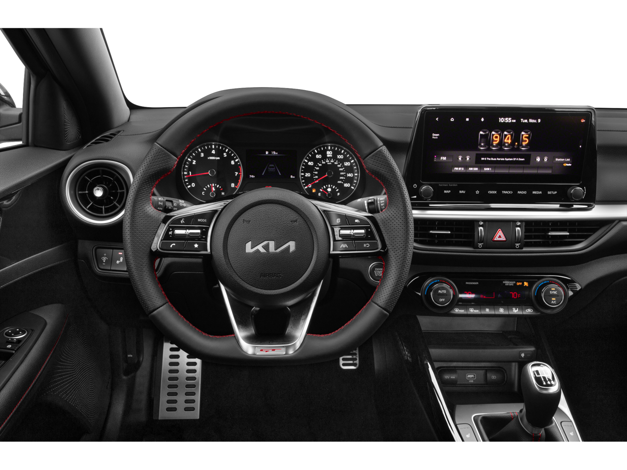 The Forte GT's striking exterior is highlighted by its bold design elements, including a sporty front fascia, sleek profile, and a rear spoiler that adds a touch of athletic flair. Step inside and you'll be greeted by a spacious and well-appointed cabin, complete with premium materials and a host of advanced features that cater to your every need.