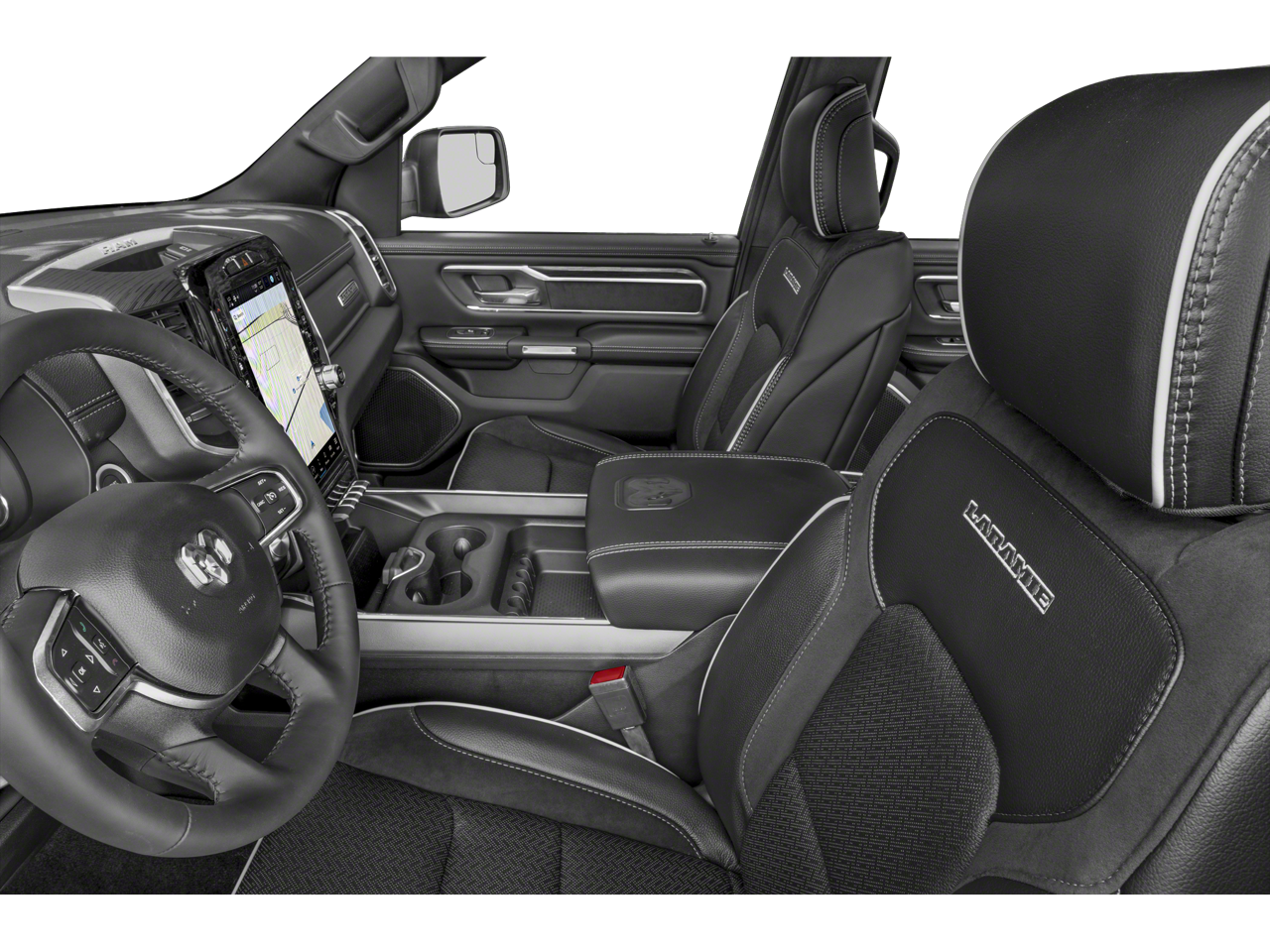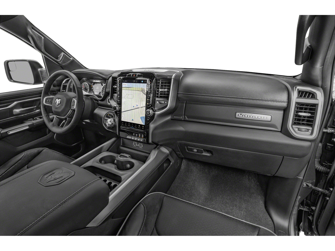This 1500 Laramie includes Laramie Level 1 Equipment Group (12 Touchscreen Display, 2nd Row In Floor Storage Bins, 4G LTE Wi-Fi Hot Spot, Apple CarPlay, Auto High Beam Headlamp Control, Blind Spot & Cross Path Detection, Connected Travel & Traffic Services, Connectivity - US/Canada, Disassociated Touchscreen Display, Electric Shift-On-Demand Transfer Case, Foam Bottle Insert (Door Trim Panel), For Details, Visit DriveUconnect.com, For More Info, Call 800-643-2112, Front Door Accent Lighting, Front LED Fog Lamps, Global Telematics Box Module (TBM), Google Android Auto, GPS Antenna Input, GPS Navigation, HD Radio, Integrated Center Stack Radio, Integrated Voice Command w/Bluetooth®, LED Reflector Headlamps, Radio: Uconnect 5 Nav w/12.0 Display, Rain Sensitive Windshield Wipers, Rear Door Accent Lighting, Rear Power Sliding Window, Rear Window Defroster, Remote Tailgate Release, SiriusXM Radio Service, SiriusXM w/360L, and USB Host Flip), Quick Order Package 27H Laramie, #1 Seat Foam Cushion, 10 Speakers, 3 Rear Seat Head Restraints, 3.21 Rear Axle Ratio, 4 Way Front Headrests, 4-Wheel Disc Brakes, 48V Belt Starter Generator, ABS brakes, Adjustable pedals, Air Conditioning, Alloy wheels, AM/FM radio: SiriusXM with 360L, Apple CarPlay/Android Auto, Audio memory, Auto-dimming door mirrors, Auto-Dimming Exterior Driver Mirror, Auto-dimming Rear-View mirror, Automatic temperature control, Brake assist, Bumpers: chrome, Chrome Exterior Mirrors, Class IV Receiver Hitch, Compass, Convex Wide-Angle Exterior Mirror Insert, Delay-off headlights, Driver door bin, Driver Seat Memory, Driver vanity mirror, Dual front impact airbags, Dual front side impact airbags, Electronic Stability Control, Exterior Mirrors Courtesy Lamps, Exterior Mirrors w/Heating Element, Exterior Mirrors w/Memory, Exterior Mirrors w/Supplemental Signals, Front anti-roll bar, Front Center Armrest w/Storage, Front dual zone A/C, Front fog lights, Front License Plate Bracket, Front reading lights, Front Seat Back Map Pockets, Front wheel independent suspension, Fully automatic headlights, Garage door transmitter, Heated door mirrors, Heated Front Seats, Heated front seats, Heated Steering Wheel, Heated steering wheel, Illuminated entry, Leather steering wheel, Leather Trim 40/20/40 Bench Seat, Low tire pressure warning, Memory seat, Navigation System, Occupant sensing airbag, Outside temperature display, Overhead airbag, Overhead console, Panic alarm, ParkSense Front/Rear Park Assist w/Stop (DISC), ParkView Rear Back-Up Camera, Passenger door bin, Passenger vanity mirror, Pedal memory, Power 2-Way Driver Lumbar Adjust, Power 2-Way Passenger Lumbar Adjust, Power 8-Way Driver & Passenger Seats, Power door mirrors, Power driver seat, Power passenger seat, Power steering, Power windows, Power-Folding Mirrors, Radio data system, Radio: Uconnect 5 Nav w/8.4 Display, RAM Grille Badge - Chrome, Rear 60/40 Folding Seat, Rear anti-roll bar, Rear seat center armrest, Rear step bumper, Rear Wheelhouse Liners, Remote keyless entry, Security system, Speed control, Split folding rear seat, Steering wheel mounted audio controls, Tachometer, Telescoping steering wheel, Tilt steering wheel, Traction control, Trip computer, Turn signal indicator mirrors, Variably intermittent wipers, Ventilated Front Seats, Ventilated front seats, Voltmeter, Wheels: 18 x 8 Aluminum Base Painted, and Wheels: 20 x 9 Premium Paint/Polished . While every effort has been made to ensure display of accurate data, the vehicle listings within this web site may not reflect all accurate vehicle items. All Inventory listed is subject to prior sale. The vehicle photo displayed may be an example only. Pricing throughout the web site does not include any options that may have been installed at the dealership. Please see the dealer for details. Vehicles may be in transit or currently in production. Some vehicles are shown wit