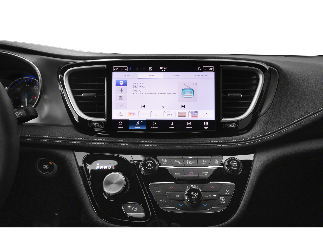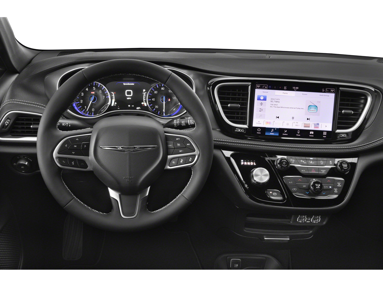 This Pacifica Select includes Quick Order Package 27L, 10.1 Touchscreen Display, 17 x 7.0 Aluminum Wheels, 3.25 Axle Ratio, 3rd row seats: split-bench, 4-Wheel Disc Brakes, 4G LTE Wi-Fi Hot Spot, 6 Speakers, ABS brakes, Air Conditioning, Alloy wheels, AM/FM radio: SiriusXM, Apple CarPlay, Apple CarPlay/Android Auto, Auto-dimming Rear-View mirror, Automatic temperature control, Black Seats, Brake assist, Bumpers: body-color, Caprice Leatherette Bucket Seats, Compass, Delay-off headlights, Disassociated Touchscreen Display, Driver door bin, Driver vanity mirror, Driver's Seat Mounted Armrest, Dual front impact airbags, Dual front side impact airbags, Electronic Stability Control, Emergency communication system: Chrysler Connect, For Details, Visit DriveUconnect.com, Four wheel independent suspension, Front anti-roll bar, Front Bucket Seats, Front dual zone A/C, Front Fascia Air Deflectors, Front fog lights, Front reading lights, Fully automatic headlights, Garage door transmitter, Google Android Auto, GPS Antenna Input, Heated door mirrors, Heated front seats, Heated steering wheel, Illuminated entry, Integrated Active Noise Cancellation, Integrated Center Stack Radio, Knee airbag, Low tire pressure warning, Manufacturer's Statement of Origin, Memory seat, Occupant sensing airbag, Outside temperature display, Overhead airbag, Overhead console, Panic alarm, ParkView Rear Back-Up Camera, Passenger door bin, Passenger seat mounted armrest, Passenger vanity mirror, Power door mirrors, Power driver seat, Power Liftgate, Power steering, Power windows, Radio data system, Radio: Uconnect 5 with 10.1 Display, Rain sensing wipers, Rear air conditioning, Rear reading lights, Rear window defroster, Rear window wiper, Reclining 3rd row seat, Remote keyless entry, Security system, SiriusXM Guardian - Included Trial (B), Speed control, Split folding rear seat, Spoiler, Steering wheel mounted audio controls, Tachometer, Telescoping steering wheel, Tilt steering wheel, Touring Suspension, Traction control, Trip computer, Turn signal indicator mirrors, USB Host Flip, Variably intermittent wipers, and Voltmeter . While every effort has been made to ensure display of accurate data, the vehicle listings within this web site may not reflect all accurate vehicle items. All Inventory listed is subject to prior sale. The vehicle photo displayed may be an example only. Pricing throughout the web site does not include any options that may have been installed at the dealership. Please see the dealer for details. Vehicles may be in transit or currently in production. Some vehicles are shown with optional equipment. See the actual vehicle for complete accuracy of features, options & pricing. Because of the numerous possible combinations of vehicle models, styles, colors and options, the vehicle pictures on this site may not match your vehicle exactly; however, it will match as closely as possible. Some vehicle images shown are stock photos and may not reflect your exact choice of vehicle, color, trim and specification. Not responsible for pricing or typographical errors. Virtual Inventory, Available Configurations and In-Transit inventory contains vehicles that have not actually been manufactured. These vehicles show consumers sample vehicles that may be available. Pricing, Options, Color, and other data pertaining to these vehicles are provided for example only. All information pertaining to these vehicles should be independently verified through the dealer. 19/28 City/Highway MPG